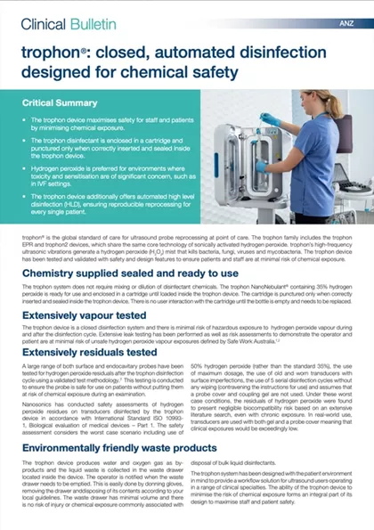 • The trophon device maximises safety for staff and patients by minimising chemical exposure.